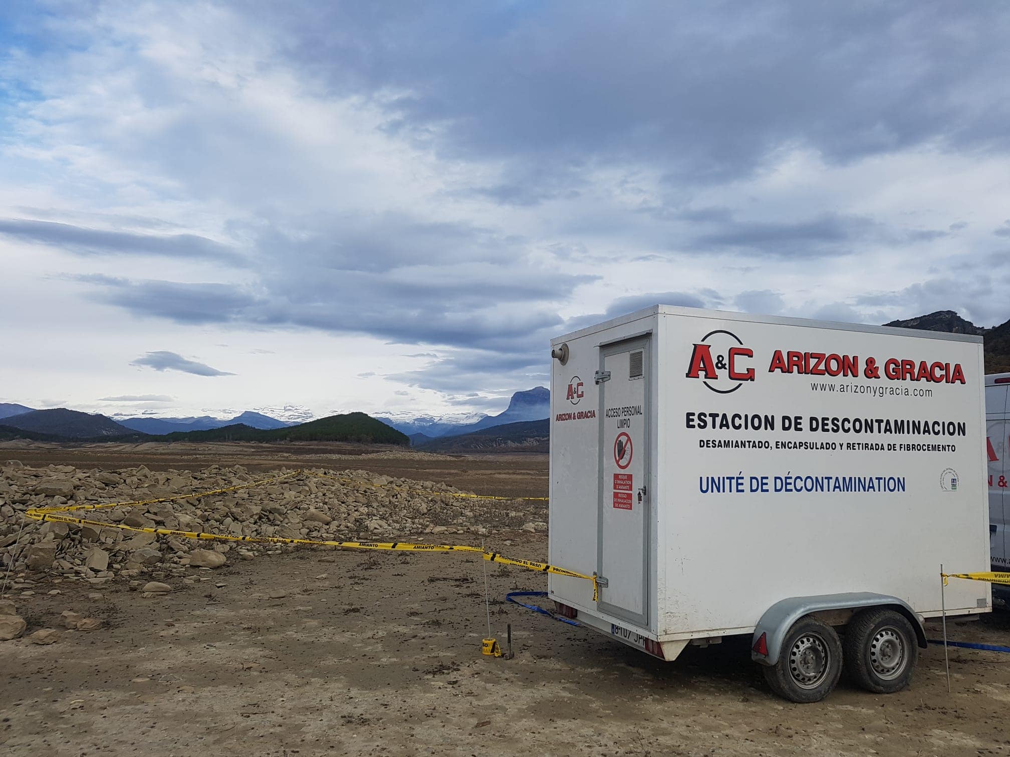 El pasado mes de diciembre hicimos una intervención de desamiantado muy especial en la provincia de Huesca. La Confederación Hidrográfica del Ebro nos contrató para eliminar con seguridad los trozos de una cubierta de fibrocemento que estaban en el lecho del pantano de Mediano.