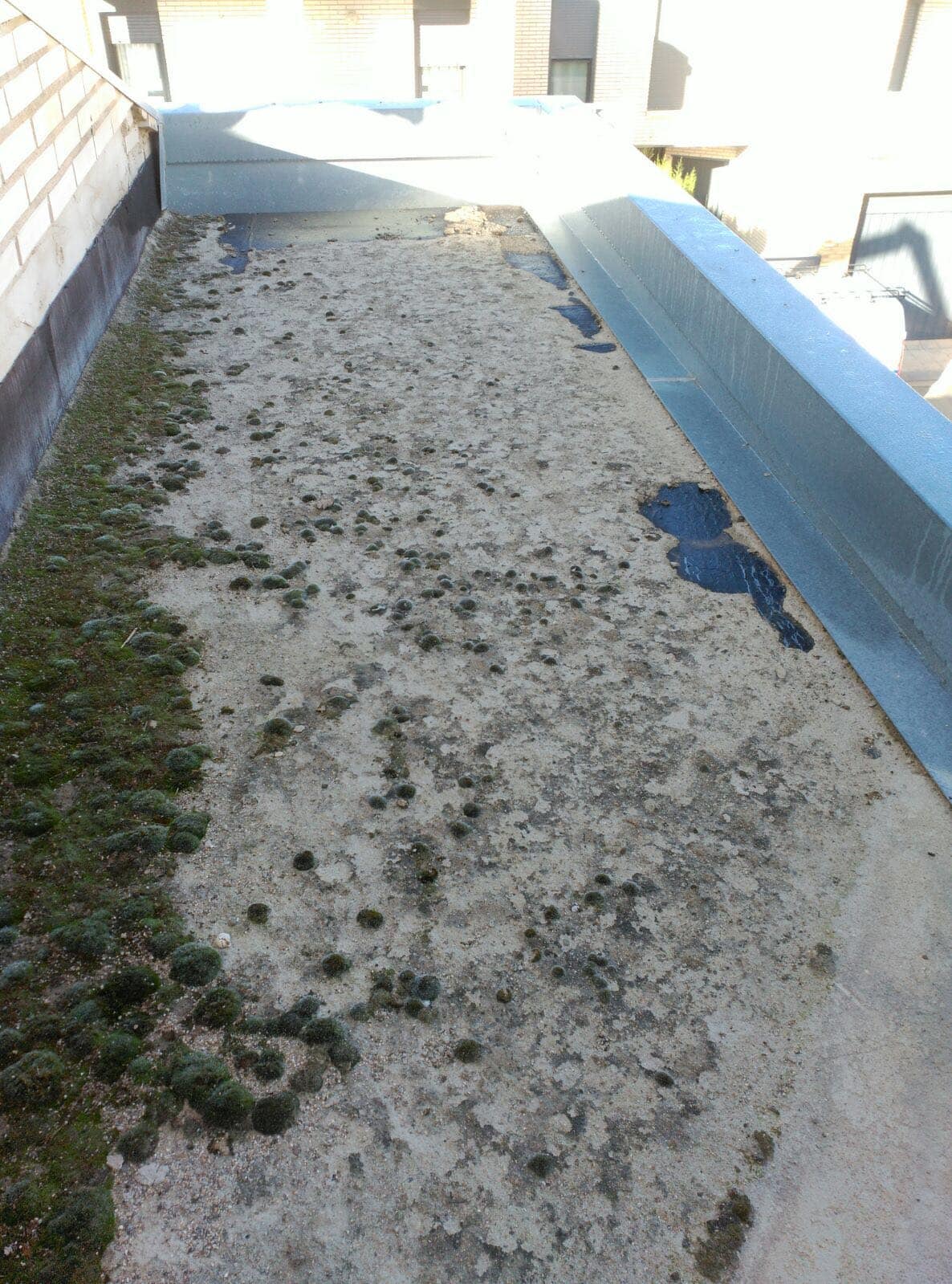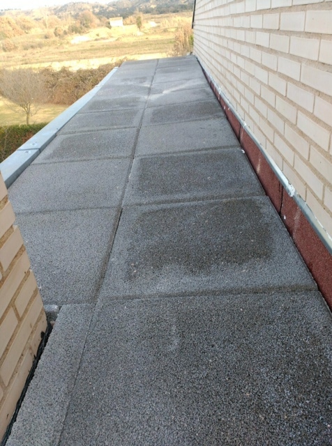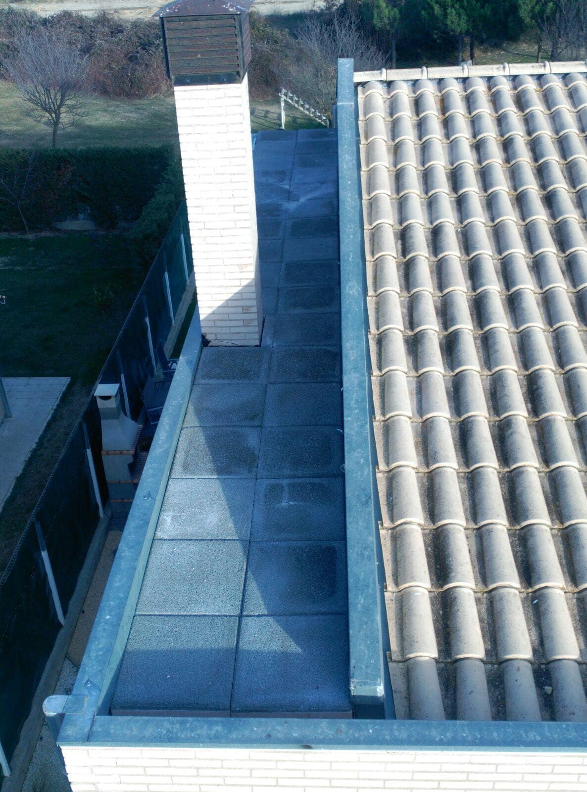 Decidieron ponerse en manos de profesionales, confiando en nosotros para la reparación del aislamiento de la cubierta. Nosotros, como expertos certificados decidimos utilizar para ello Texlosa, una baldosa aislante especialmente diseñada para cubiertas planas que reduce drasticamente el salto térmico. Está compuesta por una base de espuma de poliestireno extruído con estructura de célula cerrada, autoprotegida en su cara superior con una capa de mortero de 25 o 35 mm de espesor, que le da una superficie resistente y un acabado de fácil mantenimiento. Esto la convierte en el material ideal para un caso como éste en el que la cubierta es transitable y cuyo mantenimiento y limpieza corre a cargo de particulares.