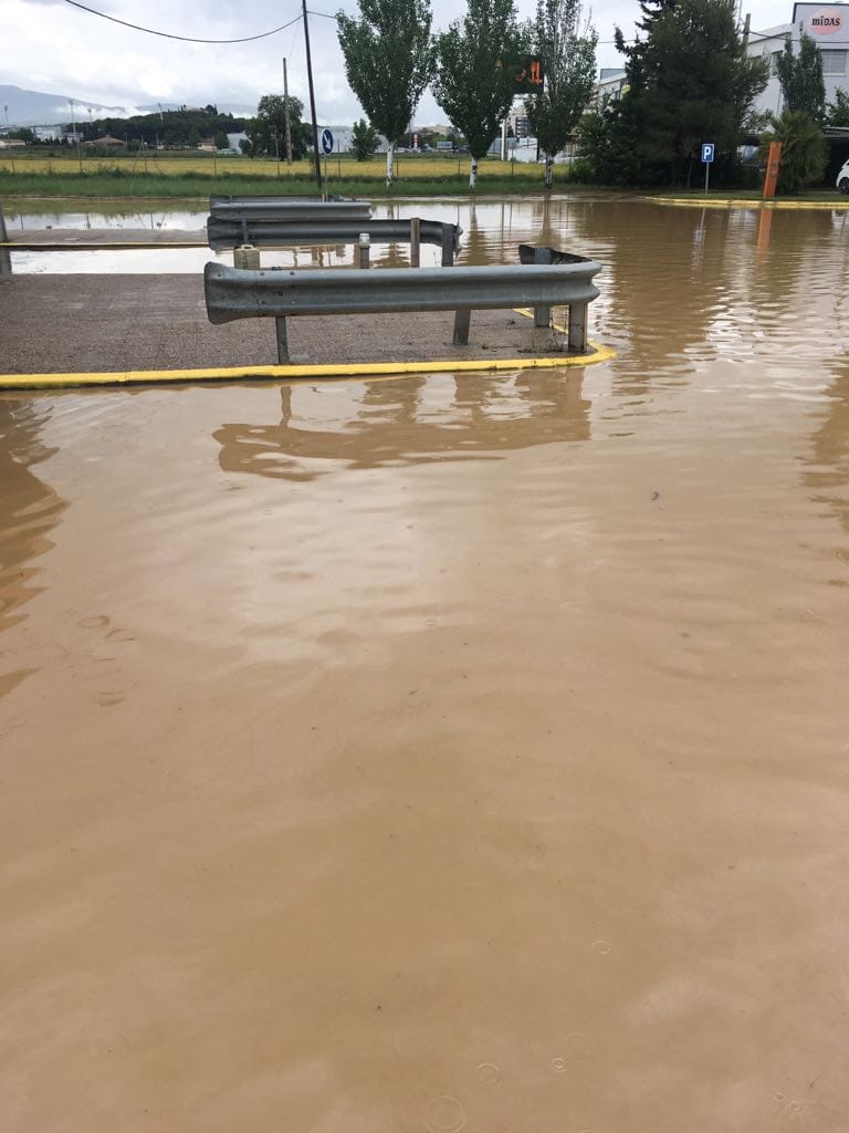 El lunes se registraron más de 25l/m2 durante la mañana que sumados a los que cayeron por la noche, hicieron que en diversos puntos de la ciudad se acumulara el agua causando inundaciones. Uno de estos puntos es la estación de la ITV de Huesca.