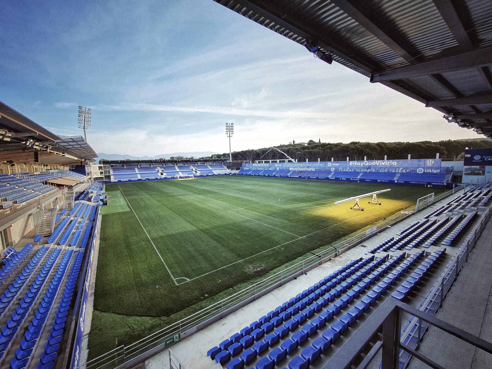Es el caso de uno de nuestros últimos proyectos, la intervención en el campo del Alcoraz, sede del la Sociedad Deportiva Huesca. Un lugar dónde se han hecho realidad muchos sueños deportivos y también dónde muchas jornadas se ha sufrido, peleado y luchado “fieles siempre, sin reblar”.