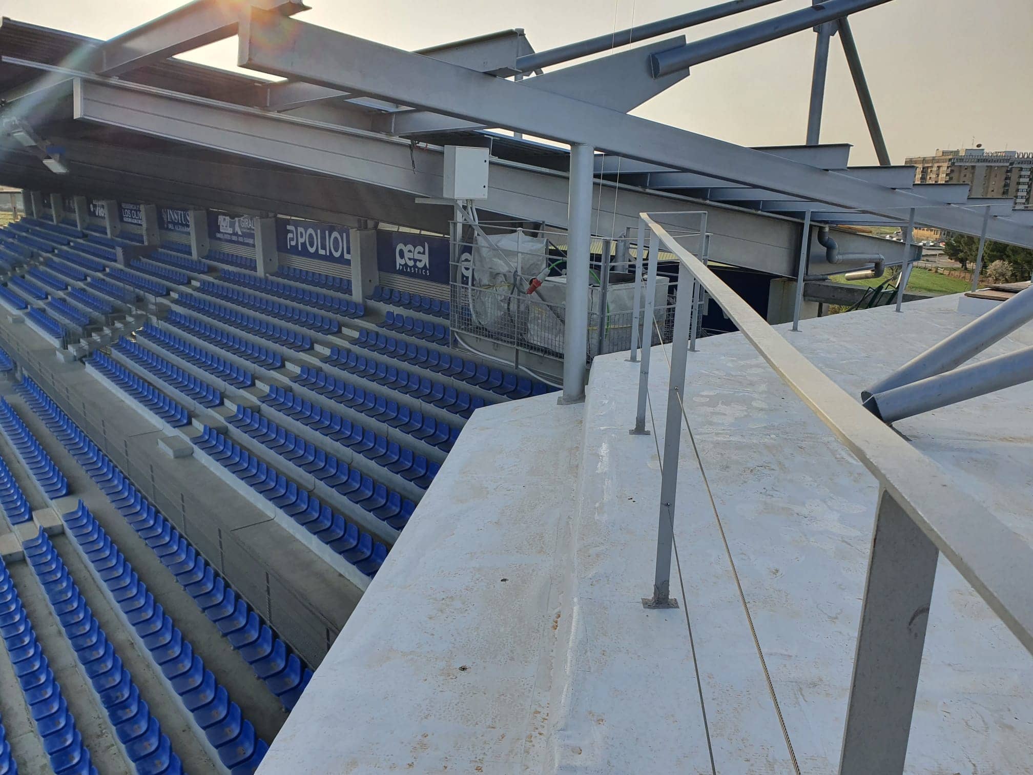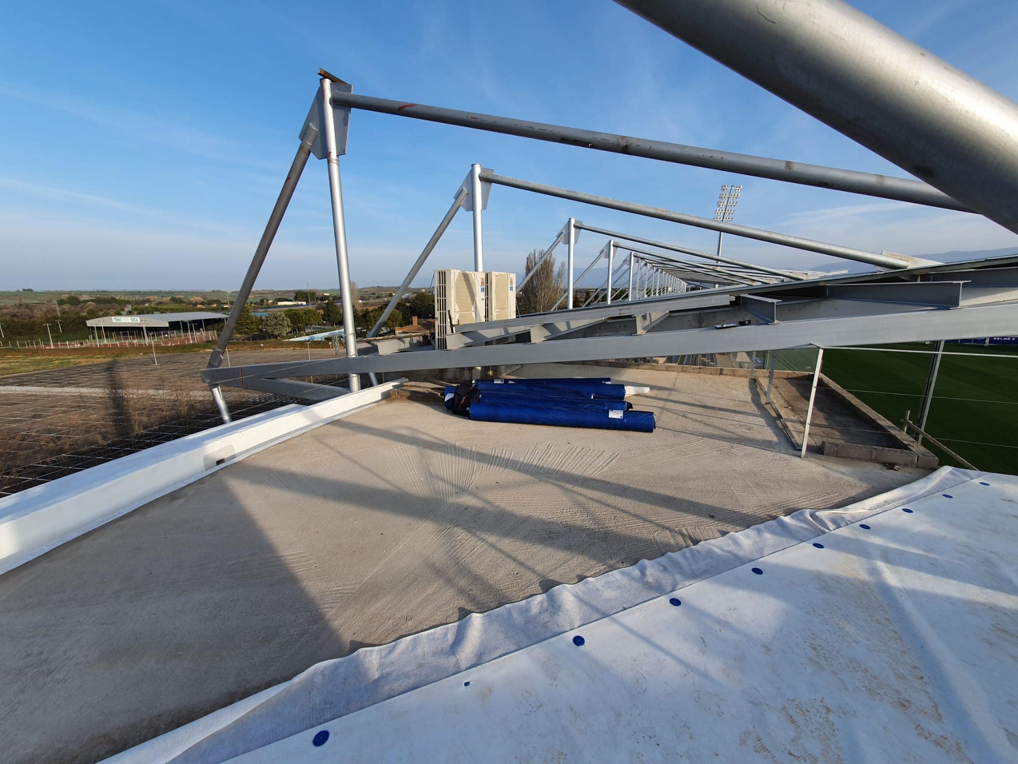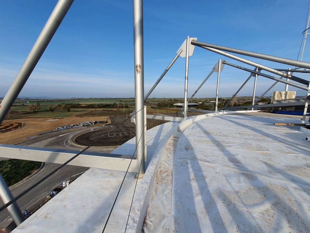 Se trata de una obra de Poliol, uno de nuestro partners habituales y nosotros estamos llevando a cabo la impermeabilización de la cubierta del torreón de la esquina suroeste, donde se ubicará el museo histórico del equipo.