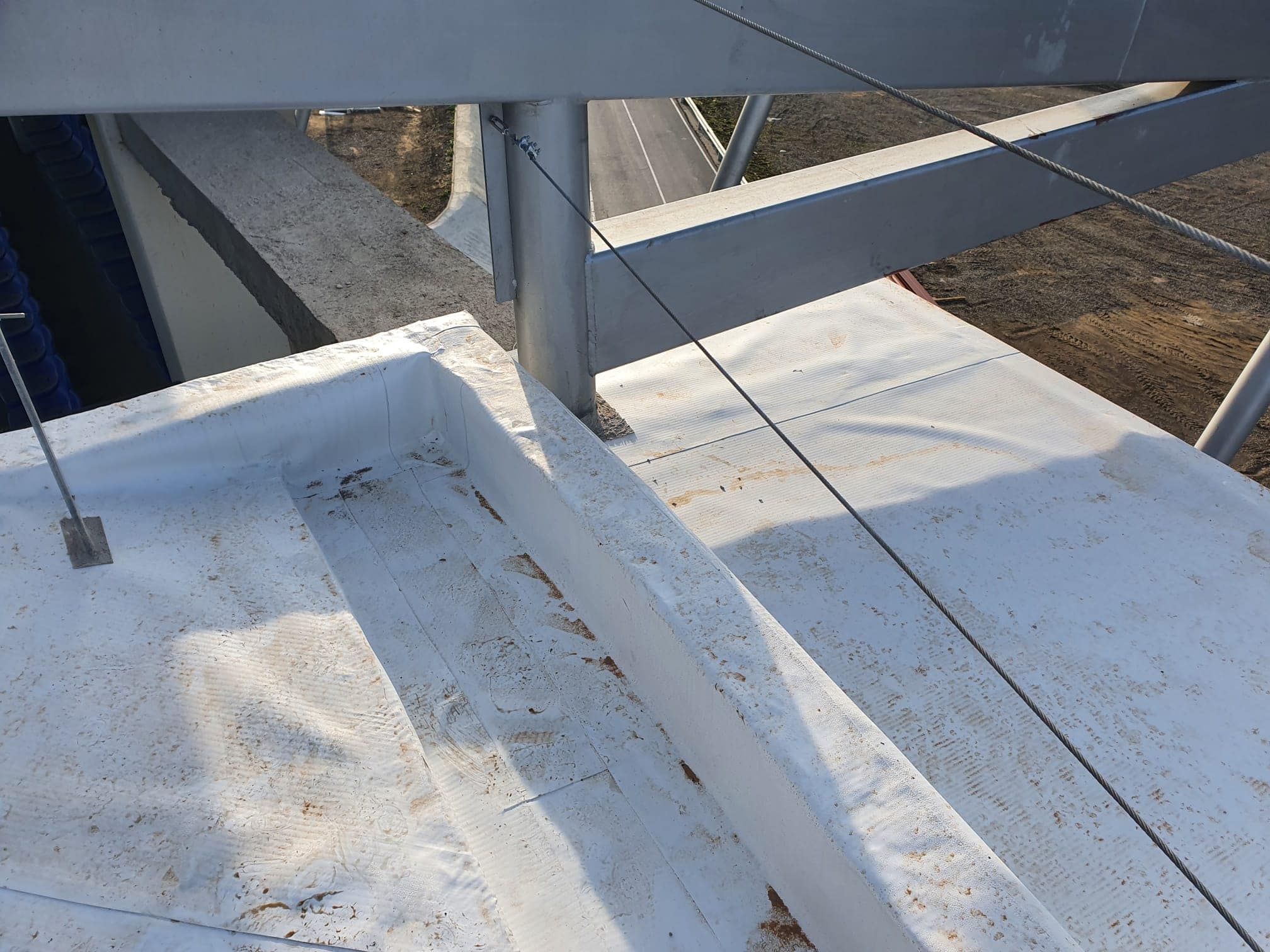 Para realizar esta intervención de 190m2 estamos colocando sobre la cubierta del torreón construida de hormigón armado un geotextil de polipropileno y lámina de PVC Flagon. Esta lámina se caracteriza por tener un alto índice de reflexión solar y tener una alta resistencia a los agentes atmosféricos y rayos UV, algo que hay que tener muy en cuenta debido a su orientación y al clima habitual de la ciudad.